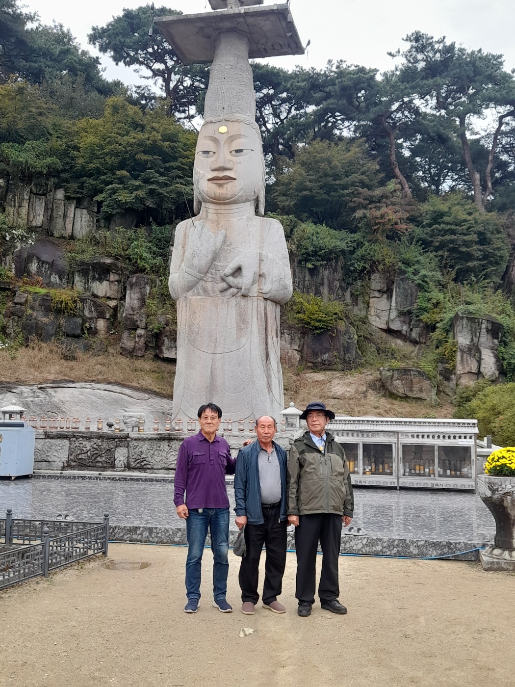 미륵 앞에서 폼을 잡은< 이광래> < 박길주> < 정일웅>