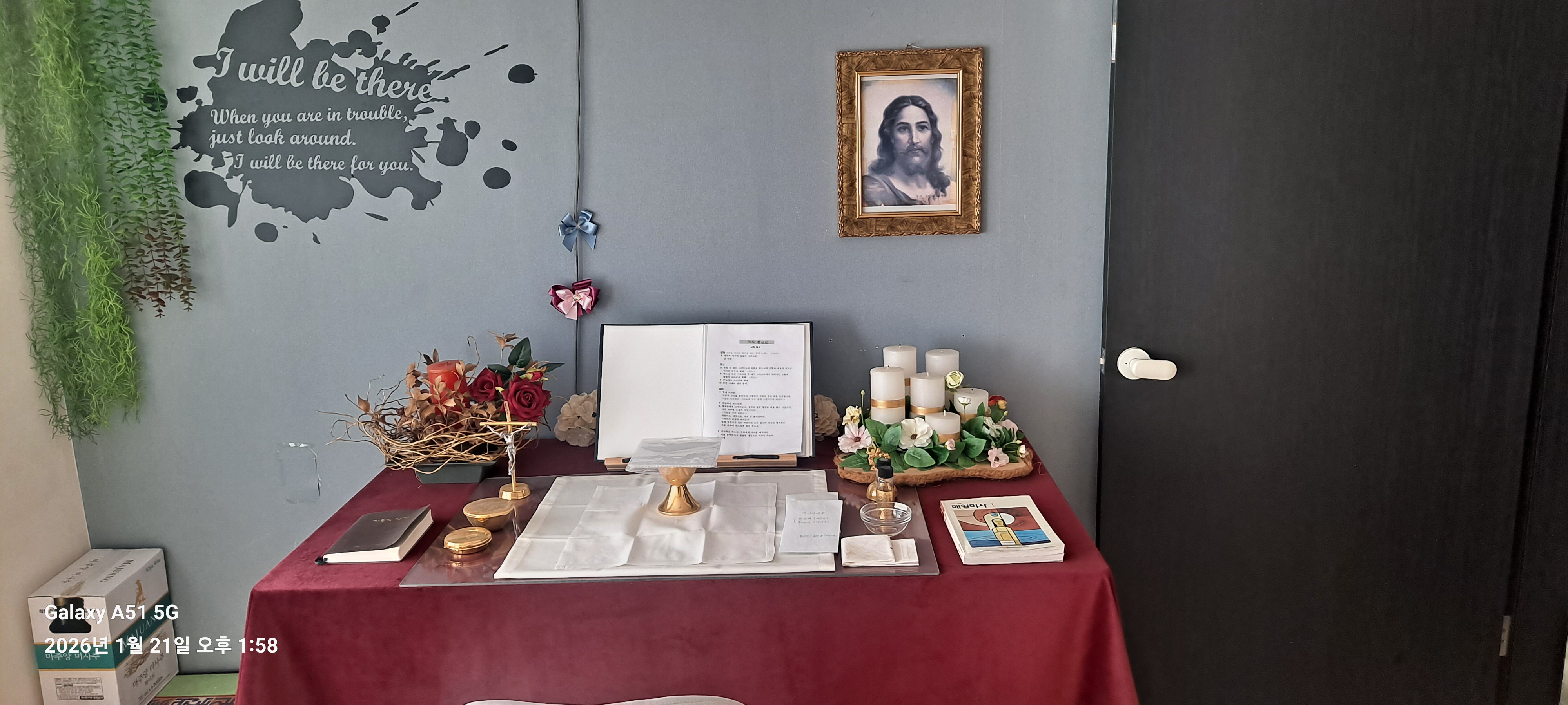 제일 큰 방에 미사를 드릴 제대가 차려져 있는데